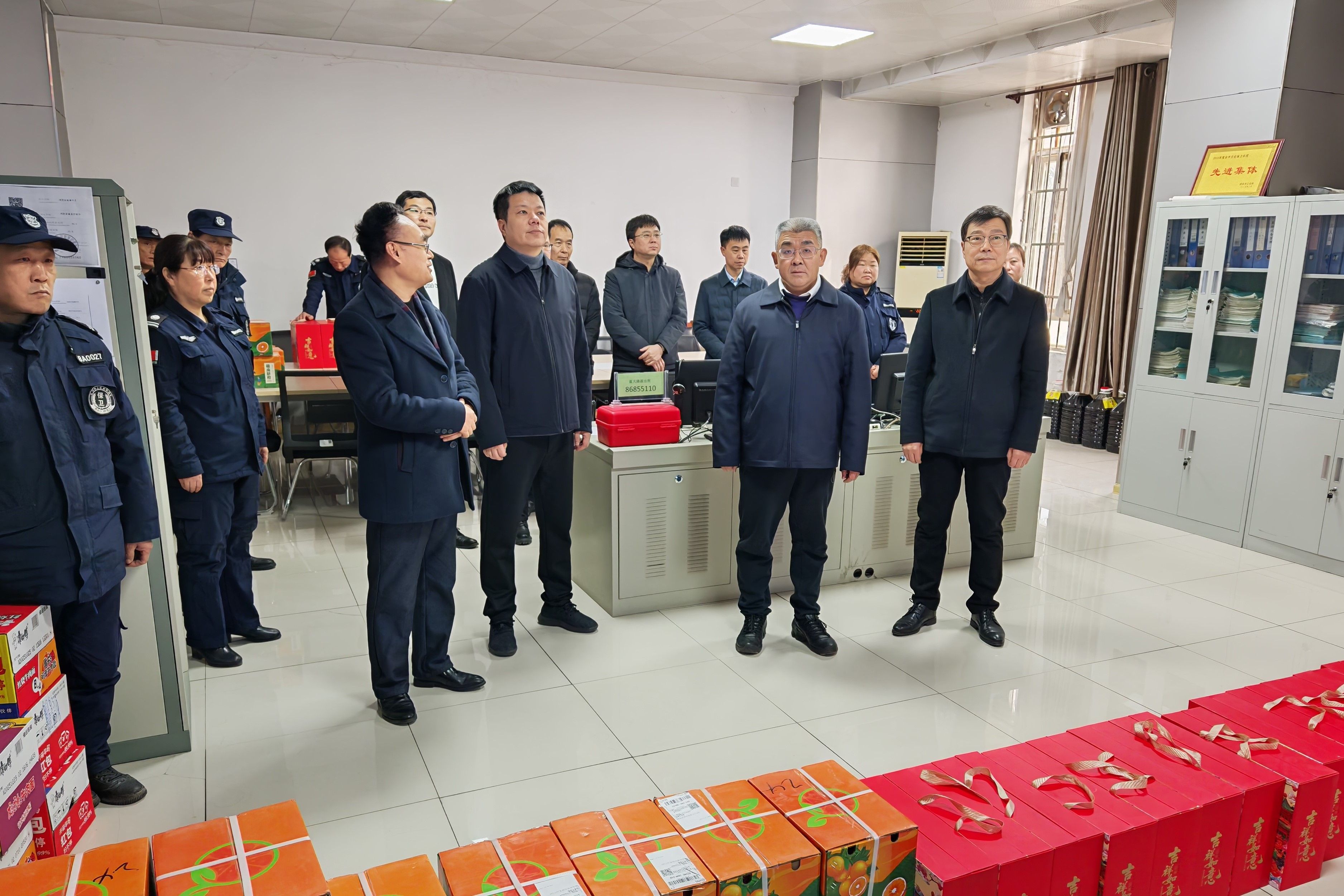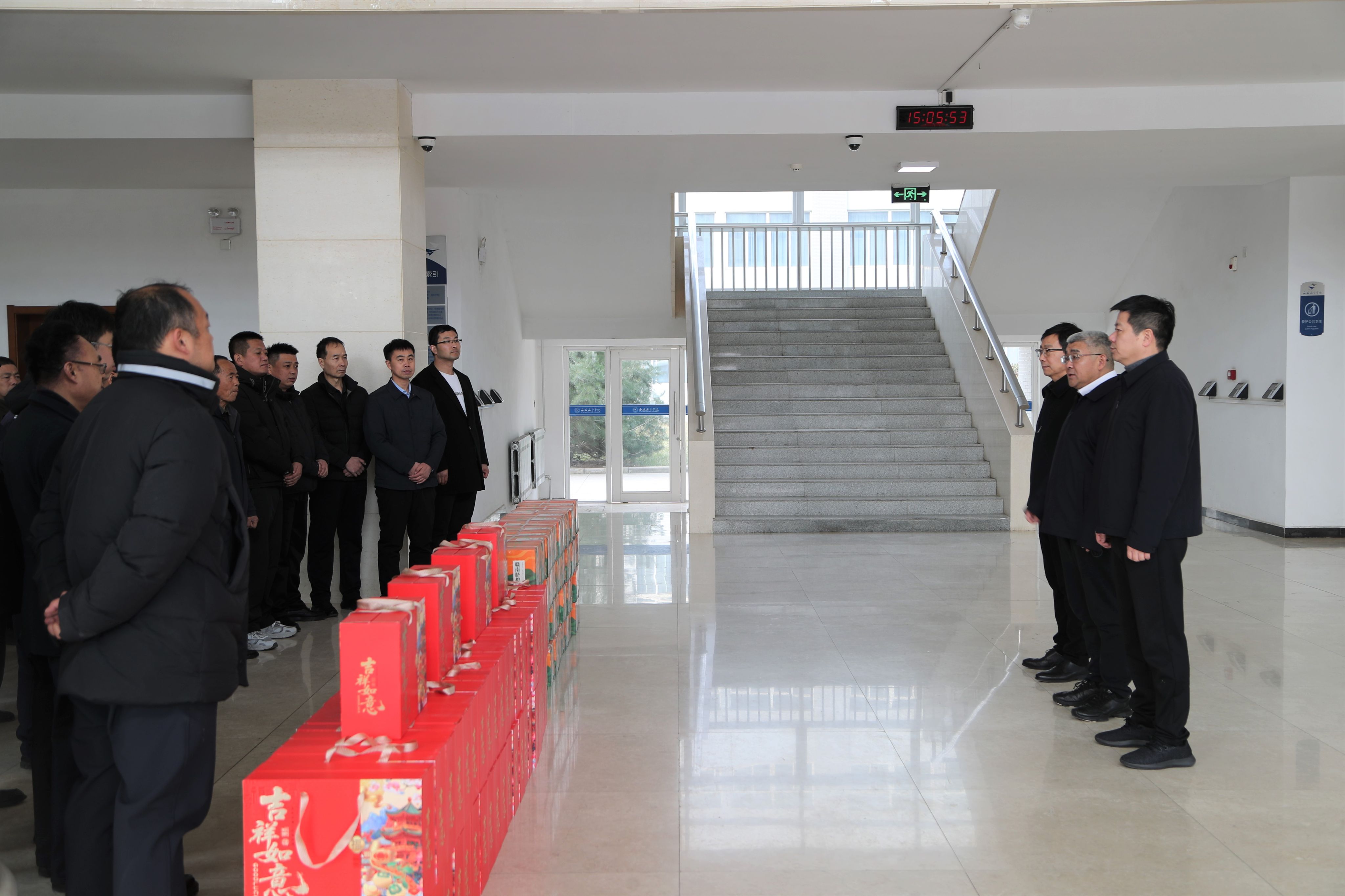 2月16日、17日农历除夕、正月初一,党委书记祁玉龙,党委副书记、纪委书记曹渊,党委副书记宁永录、副校长李永刚带队慰问两校区在岗职工。党委组织部、党委宣传部、校工会、保卫处、后勤保障处等部门负责人及值班干部、工作人员一同参加慰问。